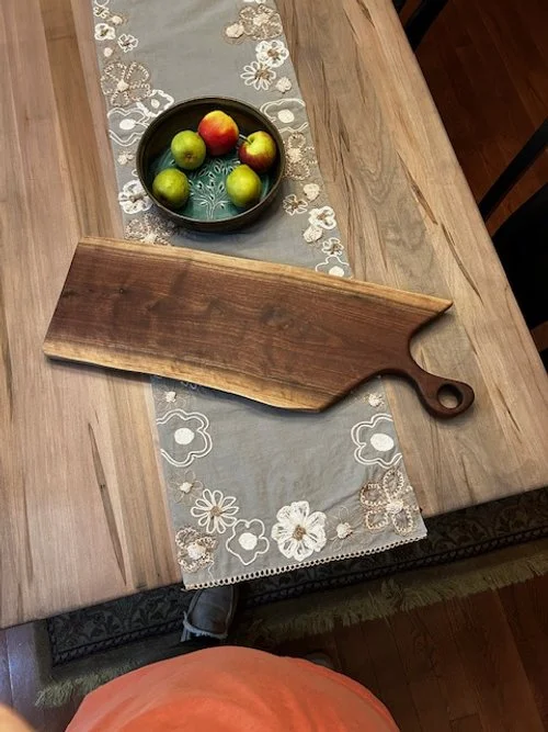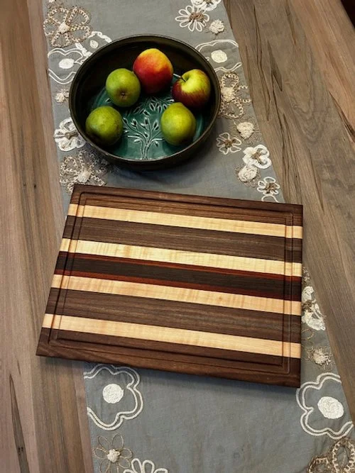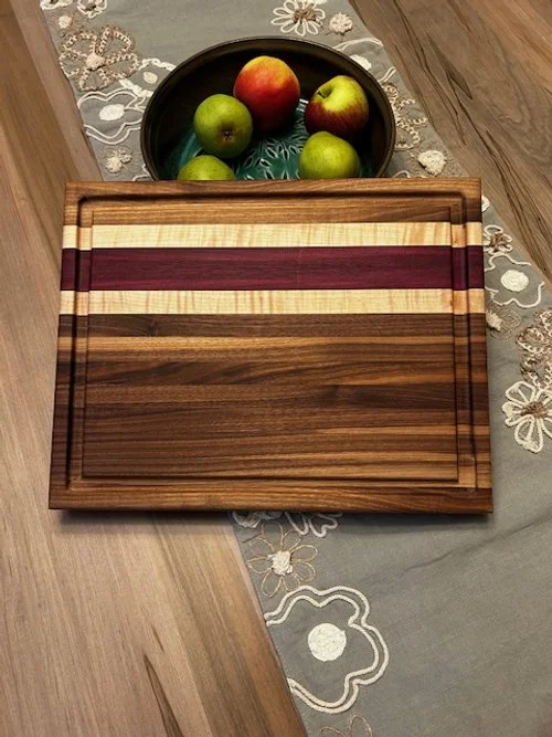 Black Walnut, Maple, and Tiger Wood, Edge Grain Chevron Cutting Board, 15" x 21" x 1 1/4" $225.00 16" Maple,Black Walnut, Lazy Suzan $89.00 "One-of-a-kind" Black Walnut Live Edge Charcuterie Board $85.00 "One-of-a-kind" Black Walnut Live Edge Charcuterie Board $95.00 Maple, Padauk, and Wenge, edge grain cutting board, 12" x 16" x 1 1/4" $125.00 "ONE-OF-A-KIND" Black Walnut edge grain cutting board, 12" x 16" x 1 1/4" $125.00 Maple,Black Walnut, Wenge,and Padauk, edge grain cutting board 12" x 16" x 1 1/4" $125.00 Large Cheese Slicer $45.00 16" Maple, Black Walnut, and Purpleheart Lazy Suzan. $89.00 16" Padauk, Maple, and Black Walnut Lazy Suzan. $89.00 Black Walnut, Purpleheart,and Maple, edge grain cutting board 12" x 16" x 1 1/4". $125.00 Large Cheese Slicer. $45.00 Large Cheese Slicer $45.00 Large Cheese Slicer $45.00 BuddyButter Board Wax 2oz Sale Price: $7.00 Original Price: $9.00 Sale BuddyBoard Board Oil 4oz Sale Price: $7.00 Original Price: $9.00 Sale Maple,Tiger Wood, and Black Walnut, edge grain cutting board 12" x 16" x 1 1/4" $125.00